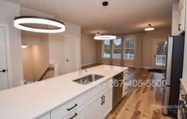 Upstairs, the open-concept main level includes a bright living area, dining space, and a gourmet kitchen with stainless steel appliances, quartz countertops, a large island, and a pantry. A door off the dining area leads to a spacious deck, perfect for outdoor relaxing or entertaining. A convenient half bathroom is also located on this level.