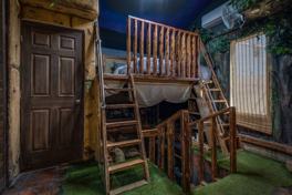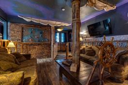 A truly one-of-a-kind home that brings creativity and fun to life! This vibrant residence stands out setting the tone for the unique style found inside. Step indoors and be transported to a world of imagination — the interior is filled with custom-designed, pirate themed spaces that make every room an adventure. The living evokes the feeling of being aboard a ship, complete with ocean-inspired murals and nautical details, while the entertainment area transforms into a lively pirate tavern, complete with a ship-shaped bar, karaoke stage, ambient lighting with disco ball, artistic wall designs, and a fully stocked bar. A separate living space with a separate entrance features a loft style bed, sunken cozy living space, separate kitchenette and private bathroom is perfect for family members wanting additional space. The rear yard offers a covered patio with swim spa and hot tub with jets. Perfect for those who love to entertain or simply enjoy a playful atmosphere, this home combines comfort, character, and creativity in every corner.