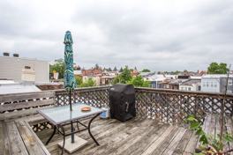 Find the perfect combination of new renovations and old charm in this ideal two-bedroom unit! Fall in love with scenic views, gleaming hardwood floors, and abundant natural light in this top floor space. Enjoy the modern kitchen with chic tiled backslash and all new appliances. Continue through the unit to find a warm and inviting lounge space with restored wood floors. Walk through charming French doors to find an airy and elegant bedroom with vaulted ceiling, built-in shelves, lovely bay windows, and skylights that saturate the space with natural light. The updated bathroom has a timeless design with tumbled marble tile and neat, thoughtful fixtures. And the back-bedroom with boasts a roomy closet and private balcony!