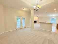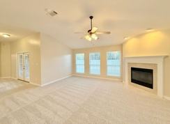Enter through the elegant double archways leading to the great room with vaulted ceiling, corner fireplace, and views of the private backyard. The large, open kitchen is the heart of this home, featuring Corian countertops, a center island, breakfast bar, walk-in pantry, and stainless steel appliances including a refrigerator, flat top range/oven, built-in microwave, and dishwasher.