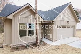 This breathtaking, one-level, new construction home is ideally situated in the heart of the Halls community of North Knoxville, minutes away from local shopping, dining, interstate access, and much more. It is beautifully finished inside and out with board and batten style siding and a brick skirt on the exterior, luxury vinyl plank flooring and contemporary fixtures throughout the interior, shaker style cabinets & granite countertops in the kitchen and bathrooms, the list goes on! The primary suite boasts a full three-piece attached ensuite complete with a double vanity, walk-in shower, and private lavatory, along with a walk-in closet. Two additional spacious rooms and a full bathroom are just down the hall, ready to accommodate all your household's and guests' needs. Perhaps best of all is the expansive back deck overlooking the wooded lot, the perfect space to enjoy the gorgeous seasonal weather we experience her in East TN! There is even a two-car garage, and large concrete driveway. You don't want to miss this one, schedule your self-guided showing today!