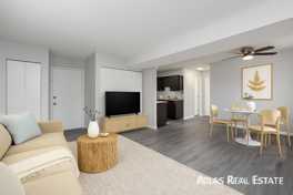 Step into a beautifully updated home featuring a large open floor plan with plenty of cabinet space for all your storage needs. Freshly renovated with new paint and flooring, this apartment offers a modern and inviting atmosphere. Open floor plan concept, who doesn't love to cook and take advantage of their flat screen? Fireplace gives the space a warm homey feel, natural light streams in from all the windows. The bedrooms each have a walk in closet and the perfect window shelf for some plants or art. (not recommended if you own cats- if you know, you know). There is a storage closet in the hallway for any of your extra things and laundry is conveniently on site. This unit is now open for tours and we invite you to come see the space!