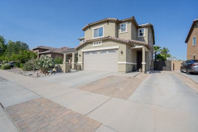 Gorgeous 4/3.5 Goodyear House - Pool, Loft, & Luxury Living! Note: House will be rented unfurnished. Live large in this stunning Goodyear home featuring wood-plank style flooring, a spacious living room with seamless kitchen flow, and a modern kitchen with stainless steel appliances and an oversized island. Enjoy a versatile loft, cozy bedrooms, updated baths, and a spa-like master suite with dual sinks. Includes washer/dryer, 2-car garage, turf yard, covered patio, and a private pool for year-round enjoyment. Bonus: a separate casita with its own bath and living room - perfect for guests or work-from-home. Prime location near shopping, dining, and schools.