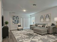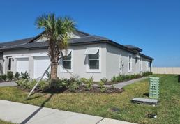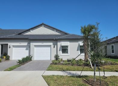 One or more photo(s) has been virtually staged. ***$500 ONE TIME CREDIT IF LEASE SIGNED IN NOV*** Brand New End-Unit Villa in Medley at Mirada 55+ Never Lived In! This brand-new, never lived in villa offers the perfect combination of modern comfort, functionality, and resort-style living. Featuring 2 bedrooms, 2 bathrooms, and a versatile flex room, this thoughtfully designed home boasts an open living and dining area ideal for both relaxing and entertaining. The spacious kitchen offers an abundance of counter and cabinet space including 42" upper cabinets framed in crown molding - perfect for cooking and gathering. Enjoy a split-bedroom layout for privacy and comfort. The primary suite includes a large walk-in closet and a private en-suite bath with dual vanities and a glass-enclosed shower. The secondary bedroom is conveniently located near the second full bath, ideal for guests. The flex room provides a great option for a home office, den, or additional sitting area. This home is partially furnished with a brand new gray leather sectional sofa in the living room, a queen bed with nightstands in the secondary bedroom, and a desk and chair in the flex room ready for you to move right in. Additional features include a spacious covered back porch, one-car garage, and a separate golf-cart garage. Rent includes: water, sewer, lawn care, basic cable, Wi-Fi, and lagoon access. Enjoy easy access to the Medley clubhouse, featuring a restaurant, full bar, resort-style pool, fitness center, pickleball, sports courts, dog park, plus close proximity to the Mirada Lagoon and shopping, dining, and more. Additional clubhouse & tiki bar currently under construction for Medley residents. Enjoy convenient access to the interstate for easy commutes. Schedule your private tour right away. **Small pets negotiable** Equal Housing Opportunity.