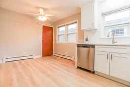 BRAND NEW EVERYTHING. Beautiful oak floors throughout; living room and bedrooms. Kitchen has brand new tile flooring, new cabinets, backsplash, countertops, and stainless steel appliances. The bathroom has brand new shower tiles, flooring, vanity, countertop and lighting. Both bedrooms have great light with the corner windows. The large, eat in kitchen has plenty of counter space and built in microwave as well as a dishwasher, gas range and refrigerator. There is laundry in the building and one parking space included! Water, heat, cooking gas, parking and garbage all included in the base rent. The building is located close to the I-90 Expressway and O'Hare International Airport.