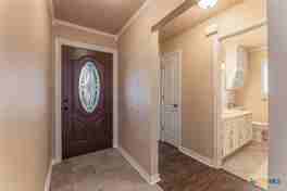 Welcome to 1102 End O' Trail, a charming 3-bedroom, 2-bathroom home located in the vibrant community of Harker Heights, TX. This home is equipped with a range of modern amenities designed for your comfort and convenience. The kitchen features custom white cabinets, a dishwasher, refrigerator, convection/microwave, and an electric range with a double oven. The home also includes a washer and dryer, smoke detectors, and an on-demand hot water heater with a water softener. The living room is cozy and inviting with a wood-burning fireplace and vinyl plank flooring throughout. The property is surrounded by a wood privacy fence and includes a sprinkler system for easy lawn maintenance, which is provided by the owner. The home also comes with a garbage disposal and pest control. The new double-paned windows come with blinds, and the whole home is protected by a surge protector system. Parking is a breeze with a 2-car garage, a 3-car driveway, and an additional parking space for an RV complete with a 50 amp RV plug. The home is finished with crown molding throughout, adding a touch of elegance. Experience the comfort and convenience of 1102 End O' Trail, your new home in Harker Heights, TX. Owner to fund $75 toward water bill for sprinkler schedule. No pets allowed at this property.