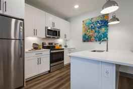 Welcome home to this beautifully designed second-floor unit featuring an open-concept layout filled with natural light. The kitchen boasts sleek white cabinetry with soft-close doors, stainless steel appliances. Enjoy modern touches throughout — from the wood-style flooring to the designer lighting and large windows that create an airy, inviting feel. The in-unit washer and dryer make everyday living convenient, while the fob-secured entry ensures peace of mind.