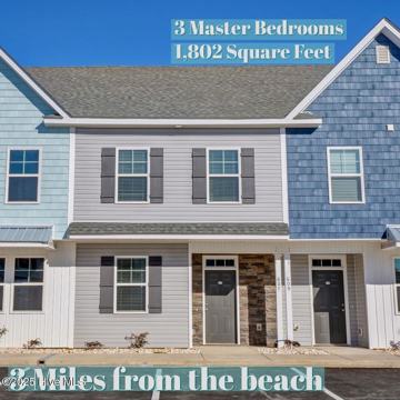 Available January 1, 2026! Gorgeous luxury townhome. This beautiful three-story is the largest of all the floor plans at Beachside Commons with over 1800 heated square feet, 3 bedrooms, 3 full baths plus a half bath. Nicely appointed with granite countertops, white cabinetry and stainless appliances. Upgraded with LVP flooring throughout except for the stairs which are carpeted. Elegant bronze hardware and fixtures, washer and dryer included. This spacious plan features 3 master bedrooms. The living area, kitchen, and a half bath are on the first floor. Two large bedrooms, each with their own bathroom on the second floor and a third bedroom with bathroom on the top floor. There is also a walk-in attic space on the third floor for storage. You can enjoy the outdoors from the rear covered patio with a privacy fence that runs along the back. There is private storage room just off the patio. Prime location with restaurants and retail shops right at the front of the community, just minutes from the beautiful beaches of Topsail, MARSOC and the back gate of Camp Lejeune. This new 100 townhome community has a pool and clubhouse. One small dog may be considered, at homeowners discretion with a $300 nonrefundable pet deposit, if approved. Security deposit required, one year lease. Lawn maintenance and trash removal are included. $40 application fee per person over 18. Roommates must be able to qualify individually.
