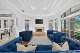 Rare Find! Fully Furnished Single-Story Rental in The Dominion Discover comfort and elegance in this beautifully appointed single-story home located in the prestigious, gated community of The Dominion. This furnished residence offers a spacious layout with a huge primary suite featuring direct access to the back patio, two walk-in closets, a soaking tub, and a separate shower. Two additional bedrooms-one perfect for a home office-provide flexibility and comfort. The chef's kitchen is a dream, with premium appliances, a wine fridge, and both a formal dining room and a cozy breakfast area that opens to a private patio for outdoor dining. Enjoy the inviting living room with a fireplace, a large laundry room, and a two-car oversized garage with room for a golf cart. Situated on a quiet cul-de-sac in The Gardens section of The Dominion and comes complete with lawn service. This home offers luxury, privacy and convenience. The Dominion amenities-including golf course, swimming pool, tennis facilities, and clubhouse-are available through separate membership
