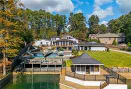 A One-of-a-Kind Lake Lanier Estate | Experience resort-style living reimagined in this extraordinary waterfront masterpiece on the highly sought-after south end of Lake Lanier. Set on 1.5 private, gated acres, this completely transformed and renovated estate offers a rare blend of architectural beauty and sophistication. The CORPS OF ENGINEERS LINE EXTENDS INTO THE WATER, granting unmatched lake access and breathtaking views. From the moment you enter through the wrought-iron gates and drive down the stone-lined drive, this home exudes craftsmanship and designer detail. Step through the grand arched entryway into sun-filled living spaces adorned with European White Oak hardwood floors and vaulted wood-beam ceilings. The open floor plan flows effortlessly between multiple great rooms, one featuring an impressive double-sided stone fireplace and a wall of glass doors that open to sweeping lake vistas. At the heart of the home is a chef’s dream kitchen, perfectly designed for both entertaining and everyday living. It features new Miele appliances, a striking Carrara marble island, custom cabinetry, a spacious butler’s pantry, and a bright morning room ideal for coffee or casual dining. Every detail has been thoughtfully curated, from statement lighting to warm gold accents that create an inviting yet luxurious atmosphere. Wake each morning to panoramic lake views from your private primary retreat, complete with a drop-down HD television, dual spacious walk-in closets with designer closet built-ins, and a spa-inspired ensuite featuring a soaking tub, steam shower with heater, and private indoor sauna. Every element has been designed for relaxation, comfort, and indulgence. This home embraces outdoor living year-round. Step into a stunning courtyard under a masterfully crafted cedar pergola, adjacent to a stylish bonus room with a wet bar and powder room. Enjoy evenings around the fire pit, soak in the jacuzzi spa, or entertain at the outdoor kitchen while the sound system plays throughout the terrace and pool area. Across the courtyard, a fully equipped private gym awaits, offering inspiration for wellness and balance - perfect for morning or afternoon workouts. Out back, the two-tier heated saltwater infinity pool takes center stage with a cascading waterfalls, fountains, a waterslide, and beautifully manicured Zeon Zoysia lawn. The poolside pergola showcases handcrafted cedar beams, blending rustic character with modern sophistication. This property is truly unmatched with its private boat ramp, cement seawall, and permitted dock complete with a boathouse and party barn, all just steps from your door. Guests will fall in love with the newly remodeled waterfront cottage featuring a kitchenette, full bath, private deck, and serene lake views. A charming barn, constructed with antique boat-hull rafters, adds character and endless possibilities for entertaining, artistry, or storage. Practicality meets perfection with two septic systems, a newer roof with 50-year shingles, new hurricane shutters, new gutters, and lifetime siding with a transferable warranty. Every detail has been carefully planned for both beauty and peace of mind. From its architectural artistry to its resort-inspired amenities, this home was designed to elevate everyday living into an unforgettable experience. Whether you’re hosting elegant lakefront gatherings, relaxing fireside, or savoring quiet mornings on the water, this property embodies the ..