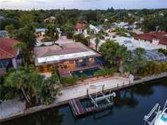 Walk through your private courtyard to this 3 bedroom, 3 bath home. This Split plan home has 2 bedrooms and 2 baths on one side and master bedroom and spa bath adjacent. Feature's a modern kitchen design with all stainless appliances and granite countertops and placement for easy entertaining and accessibility to living room and pool. Floors in the home have been updated with ceramic wood effect tile and all bedrooms rooms are ensuite, extra features are detailed such as; 2 zoned air conditioners, Culligan water purifier, custom built-ins, crown molding, plantation shutters, and custom exterior knotty pine ceiling detail at entrance. Slide back those pocket sliders and step outside your expansive lanai area for your outdoor living and take a dip in your heated salt water pool which is so much kinder on the skin. Easy to maintain mature landscaping and plenty of privacy, exterior lighting, sprinkler system, outside shower, pet run and paver walkways, courtyard and dock landings
