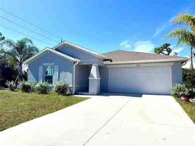 The open-concept design offers seamless flow between the family room, dining nook, and kitchen — perfect for everyday living and entertaining. The kitchen boasts a large center island with quartz countertops, and a stainless steel appliances. The primary bedroom is spacious and includes a walk-in closet and a tiled ensuite bathroom. A covered patio provides inviting outdoor space for relaxing. Conveniently located in central Port Charlotte- near shopping and restaurants.