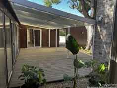 Enjoy the solitude and privacy this property provides. Located at the end of a small subdivision that is tucked-in just off of Judson Road at IH-35 in Live Oak, the property is a three bedroom, two bath with large living area and separate dining room. The living room area possesses a wet bar, and is bright due to the wall of windows and sliders leading to the private deck and court yard which is a great area for unwinding at the end of the day. The master bedroom has a sizeable closet and the master bath has a double vanity sink. The kitchen includes cook top, built-in oven, dishwasher, and refrigerator, and is large enough to include a breakfast table area. There is a large two car garage attached. The road into the property contributes to the privacy and solitude this home provides.