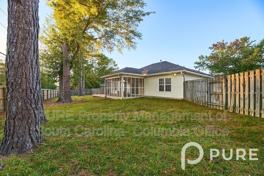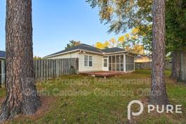 Stylish 3 bedroom, 2 full bath home in the gated Creekside in Reflections subdivision in SE Columbia. This home sits on a cul-de-sac lot w/ mature trees, covered front porch, 2-car garage, and privacy-fenced backyard w/ a deck, screened porch, and storage shed. Inside boasts luxury vinyl plank hardwood flooring and custom modern updates throughout. Open floor plan main living space has vaulted ceilings and a gas log fireplace open to the dining area and kitchen island bar counter. Kitchen also features granite countertops, subway tile backsplash, built-in shelving, and pantry. Included stainless steel smooth-top stove, built-in microwave, dishwasher, and side-by-side refrigerator. Primary bedroom suite has a walk-in closet and full bathroom w/ double vessel sinks and tub/shower. Two additional bedrooms, one w/ direct access to 2nd full bath also accessible from the hall. Laundry room off garage. Ceiling fans in all bedrooms. Convenient to I-77, Fort Jackson, and the VA Hospital. Richland 1 schools.
