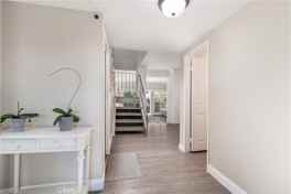 Discover this elegantly updated, light-filled end-unit townhome, perfectly situated on a quiet cul-de-sac within the prestigious, guard-gated community of Rolling Hills Estates, known as The Terraces. Residents of this exclusive HOA enjoy resort-style amenities, including five sparkling pools and relaxing spas, tennis courts, a playground, and a clubhouse equipped with a kitchen. The home features three spacious bedrooms and two and a half bathrooms, complemented by an oversized two-car garage, an additional two-car driveway, and convenient proximity to guest parking and an expansive park-like grassy area. Step inside to find wood laminate flooring throughout the main level, new carpeting, and freshly painted interiors. The bright living room is highlighted by a cozy fireplace and full-length French doors that open onto a wraparound balcony. The open-concept dining area adjoins a kitchen complete with granite countertops, elegant wood cabinetry, an electric cooktop, a wall-mounted double oven, and abundant storage. The breakfast nook, bathed in morning light, opens via a sliding door to a welcoming front patio. Upstairs, plush carpeting leads to the spacious master bedroom, featuring vaulted ceilings, two walk-in closets, and a remodeled en-suite bathroom with a soaking tub, separate shower, and dual-sink vanity. The guest bedrooms share a full hallway bathroom and access to a shared balcony. Enjoy the convenience of being within walking distance to shops, parks, and Ridgecrest Intermediate School, making this townhome a perfect blend of comfort, luxury, and location.