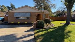 Gorgeous move-in ready brick ranch home with so many fabulous details! Covered front walkway under decorative arches opens to a beautiful floorplan with gleaming hardwood floors throughout (no carpet in this home). Huge living room with built-in entertainment system and electric fireplace. Truly light and bright space with lots of natural lighting too! Huge extra room could be formal dining room or another den space. Nice, eat-in kitchen with so many cabinets for storage and all stainless steel appliances. Home is noted as a THREE bedroom BUT there is a BONUS room that could be used for office, nursery, etc. Primary bedroom with bathroom included in count. Separate utility room with washer/dryer hook ups. Ceiling fans throughout including covered patio! Also, truly a mechanic's delight with three car detached garage "1200 sq ft with 100 amp capability. Pets case by case." Big privacy fenced-in backyard! Close to VB, shopping, restaurant, and more.