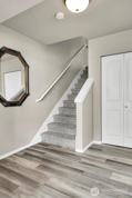 Located in the Ironwood townhomes tucked away in the Martha Lake community. Has quick access to shopping, dining, freeways, & transit, but lives like a quiet residential neighborhood! The main level on the 2nd floor with an open concept living room, dining room, kitchen, and 1/2 bathroom, with high ceilings and LVP flooring. Kitchen is with stainless steel appliances, gas range, granite counters, and lots of cupboard space. Large primary bedroom upstairs features walk in closet, and en-suite bathroom with a walk in shower and double vanity. 2 more bedrooms upstairs and full hall bathroom. 2 car garage with storage and driveway parking. Ample guest parking!