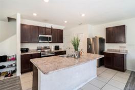 Welcome to The Orchids at Cypress Creek! This beautiful 4-bedroom, 2.5-bath home offers comfort, privacy, and no rear neighbors. Built in 2020 by D.R. Horton, this two-story concrete block home (both floors) blends modern design with functionality. The first floor features an open layout with spacious living and dining areas, wood-look vinyl flooring, and a stylish kitchen with stainless steel appliances, a large island, and walk-in pantry—perfect for entertaining. A half bath and sliding doors lead to a partially fenced backyard ideal for relaxing or grilling. Upstairs, all bedrooms and the laundry room are conveniently located. The primary suite boasts a dual-sink vanity, step-in shower, separate water closet, and walk-in closet. One guest room also has a walk-in closet, while others share a full bath with dual sinks. Enjoy resort-style amenities—clubhouse, two pools, fitness stations, sport courts, dog parks, and playgrounds—plus easy access to Hwy 301 and I-75.
