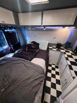 Hello there. I have a refurbished RV that is parked in my driveway that is available for rent Nov 15th. It's a nice cozy spot. It has a queen size bed, eating area, refrigerator, two heaters, a heated blanket, a sleeping bag, two fans and storage area. WiFi, utilities, kitchen area, common area, putt putt golf area, trampoline and warm hot tub are included in rent. This area has power but there is no running water. Bathroom is inside the house. Room is near two convenient bus stops 5 mins away. Several fast food locations and grocery store minutes away. Those that book and sign renters agreement by Nov 18th will get a free bottle of wine or case of beer or your choice of soda.