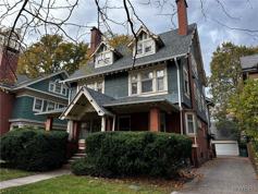 Grand & Spacious 1 bedroom, 1 bathroom first floor apartment w/ garage parking & private outdoor space. Step inside this truly spectacular unit, featuring a large Living Room w/ a WBFP, leaded glass windows & gleaming hardwood floors. The large formal Dining Room boasts a stunning barreled ceiling, a striking china cabinet & additional leaded glass windows. The large, eat-in kitchen offers stainless steel appliances, newer cabinetry, a gas stove & dishwasher. There is a fantastic oversized in-unit laundry room boasting tremendous storage space & a stackable Washer/Dryer. The large Primary Bedroom offers another beautiful fireplace (artificial), along w/ a spare seating/office area. The updated full bathroom features double vanities, tile flooring, & a large stall shower w/ bench seating. This spectacular, one-of-a-kind Elmwood Village apartment includes ALL UTILITIES, 1 car garage parking, basement storage, a private front porch & back deck, along with use of a shared backyard. This incredible property was recognized by Preservation Buffalo Niagara for its achievement in historic preservation. Just a short walk to the Elmwood Strip, Delaware Park, Lexington Co-Op & the AKG Art Museum. Medium Sized Dogs allowed, sorry no cats. Available January 1, 2026.