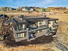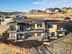 Set in the heart of Promontory, this contemporary mountain estate captures the perfect balance of artful design and livable luxury. Clean architectural lines, soaring ceilings, and walls of glass frame panoramic ski and valley views, creating an interior experience deeply connected to the landscape. A dramatic floating-petal light sculpture cascades beside a gold-inlaid feature wall and open staircase-a striking introduction to the home's refined design narrative. The main level offers seamless flow and thoughtful detail. The chef's kitchen features a waterfall Calacatta quartz island with backlit translucent stone, sleek cabinetry, and a full Wolf/Sub-Zero suite with dual ovens, two dishwashers, a warming drawer, and a convection/steam oven. A glass-enclosed wine display anchors a space perfect for entertaining or intimate dinners. The living and dining areas are warmed by wide-plank European oak floors, designer lighting, and floor-to-ceiling glass opening to a grand patio with a fire pit and private hot tub-ideal for effortless indoor-outdoor living. Two main-level primary suites offer luxury and privacy, each with patio access and spa-style baths. The main suite adds a gas fireplace, heated floors, dual vanities, a steam shower, and his-and-hers closets. The lower level is designed for connection, featuring a movie theater, wet bar, fitness studio, and three en suite bedrooms with access to the patio and hot tub. Throughout the home, polished stone, smoked glass, European fixtures, and natural burl wood create layered sophistication. Smart-home systems, gallery-height art walls, and furniture-quality built-ins reflect meticulous craftsmanship. A heated four-car garage adds comfort and convenience year-round. Set on an estate-sized homesite overlooking the Dye Golf Course and Wasatch Mountains, this residence defines Promontory's most elevated living-where architecture, craftsmanship, and nature unite in perfect harmony.