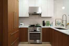 The apartment features an open kitchen with quartz countertops and modern appliances, high ceilings, and a spa-like bathroom with premium finishes. Large windows bring in excellent light. Furnishings are included, making this an easy turn-key option for anyone relocating to Queens, on assignment, or waiting on a home purchase.