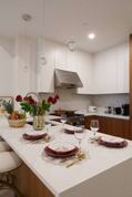 Available for 30 days or longer: fully furnished 2 bedroom, 2 bathroom residence in a premier mixed-use building at 35-32 Leavitt St, Flushing, NY 11354. The property sits above a hotel component, offering an elevated lobby experience, modern common areas, and professional management.