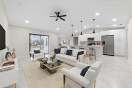 Welcome to this stunning new construction home, thoughtfully designed for modern living and flexibility. Featuring 3 bedrooms + den, 2 bathrooms. This home showcases an open-concept layout with high ceilings, spacious living and dining areas, and large windows that fill the space with natural light. The gourmet kitchen features quartz countertops, stainless steel appliances, and custom cabinetry. The Master bedroom offers a spa-like ensuite bathroom with glass shower doors, a double vanity, and two walk-in closets. Additional features include impact-resistant windows and doors, blinds installed on all windows for privacy and comfort, a paver driveway, a washer and dryer, and an outdoor kitchen.
