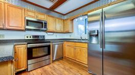 Inside, you'll find wood floors that bring warmth and character to the living space. The centerpiece of the home is a wood-burning fireplace, perfect for cozy evenings after exploring the Smokies. The kitchen is equipped with modern essentials, including a garbage disposal, ensuring practicality alongside charm.