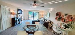 Walking distance to a small shopping center that includes restaurants, a wine bar, a gym, a mini-mart, tennis & pickleball courts.