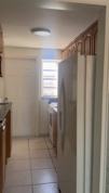 Kitchen equipped with a new microwave, stove and modern cabinets