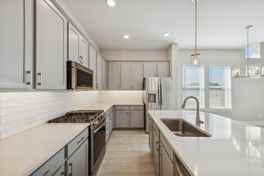 This stylish two-story home features three bedrooms, two and a half baths, a private study, and a two-car garage w/dedicated outlet for E/V. The open kitchen boasts a large island that faces the family room, complete with a gas cooktop and modern upgrades. The spacious Primary Suite includes a garden tub and an expansive walk-in closet. On the second floor, you will find a game-room, two bedrooms, and a full bath. Step outside to enjoy your extended covered patio (plumbed for gas grill) and fully fenced yard. Located in the master-planned Pomona community, this home is served by top-rated Alvin ISD schools. Prime location for commutionf to Texas Med Center or Downtown.