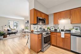 This lovely 2nd floor, one bedroom unit with partially covered balcony space features newly refinished hardwood floors, a fully applianced stainless steel kitchen with granite countertops, Schrock cabinets, side by side fridge with ice-maker, under cabinet lighting, and a peninsula open to the dining/living area and office alcove. Brand new dual fuel Bosch stove and microwave for all the cooks out there! Spacious bedroom has 2 closets with organizers, and access to the full tile bath. Additional features include: in-unit laundry, C/A, one garage parking space, common bike rack-all in a pet friendly, elevator building.