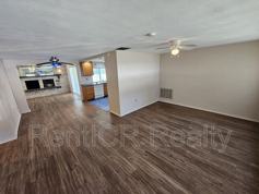 Enjoy stunning lake views from this home! Features include an updated kitchen and bathroom, attractive laminate and ceramic tile flooring, and a large screened-in patio perfect for relaxing or entertaining.