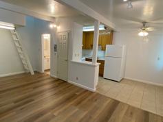This studio unit features an upgraded kitchen with newer cabinets, granite countertops, electric range, full-size refrigerator, laminate floors in the living room, tiled flooring in kitchen/bathroom, a small in-unit loft area for additional storage, one assigned carport space, and an assigned storage closet. There is a separate laundry room on site with multiple laundry machines available as well (Required to download a payment app in order to use machines).