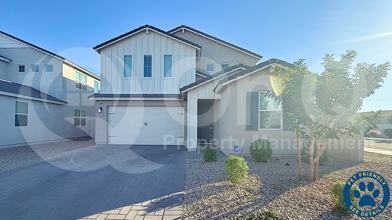 Available Now! Welcome to this beautifully upgraded smart home that perfectly blends comfort, technology, and style. This spacious 2,568 sq. ft. two-story residence features four bedrooms and three bathrooms, designed with modern living in mind. The chef’s kitchen boasts quartz countertops, Café appliances, and custom tile, opening to a bright and airy living space with new luxury vinyl wood flooring, fresh paint, and stylish custom light fixtures throughout. The home also offers a dedicated office with double doors, ideal for working from home, and a large loft that can serve as a playroom or secondary living area. Each room is equipped with ceiling fans for year-round comfort. The lushly landscaped backyard includes a fenced garden and ample space for outdoor entertaining, while the attached garage comes equipped with a Tesla charger. Conveniently located near Sprouts, Target, and local dining options, this home offers both comfort and accessibility in the heart of San Tan Valley.