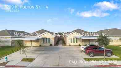 Welcome to 2209 N. Fulton St. in the vibrant city of Edinburg, TX. This stunning apartment offers three spacious bedrooms and two full bathrooms, perfect for those who value comfort and style. The open floor plan is accentuated by high ceilings and hardwood floors, creating a modern and inviting atmosphere. The kitchen is equipped with stainless steel appliances, and the living room is a perfect space for relaxation or entertaining. The master bedroom features a walk-in closet and an en-suite master bath, providing a private sanctuary within your home. This apartment also includes a washer and dryer for your convenience. The property is pet-friendly (with breed restrictions) and is secured with a gated entrance. Additional amenities include 24/7 maintenance support, covered parking, and modern fixtures. The tenant is responsible for electric and water, while trash removal and lawn care are included in the lease. Enjoy the comfort of central AC and ceiling fans to keep you cool during the warm Texas summers. This condo-quality apartment is available for a 12-month lease. Experience the best of Edinburg living at 2209 N Fulton St.