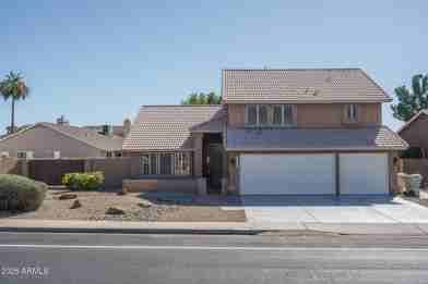 Prime Glendale location about a mile to Westgate Entertainment District and State Farm Stadium! Enjoy easy freeway access and a vibrant area filled with shopping, dining, and entertainment just minutes away. Inside the home you'll find a 4-bed, 3-bath home that backs to a lush greenbelt and offers a bright living room with soaring vaulted ceilings and a cozy fireplace. The updated kitchen features granite counters and stainless steel appliances, while the spacious primary suite includes dual sinks, a separate tub and shower, and a walk-in closet. A low-maintenance yard with a covered patio and a 3-car garage complete the package. Spend your weekends exploring nearby golf courses, hiking trails, and all the excitement of Westgate, from pro sports and concerts to top-rated restaurants and entertainment venues.