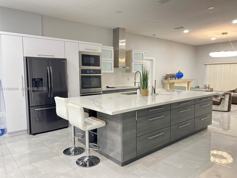 Step into this beautifully renovated 3bed/2bath home offering a perfect blend of modern design and comfortable living, with High Impact Windows. The home features elegant porcelanato flooring throughout the living areas, filling the space with natural light and warmth. The kitchen, remodeled in 2024, showcases gleaming quartz countertops, and new Samsung appliances perfect for any home chef. The primary bathroom, updated in 2025, offers a spa-like retreat with concrete-style tile and a relaxing soaking tub. Additional highlights include a full-size washer and dryer, a new A/C system for energy efficiency, and a backyard oasis with pool, jacuzzi, and lake views. Move-in ready and designed with thoughtful upgrades throughout, this home perfectly combines style, comfort, and value.
