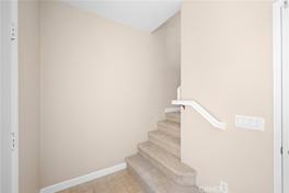 Welcome to your new sanctuary in Lake Elsinore! Nestled within the sought-after Vista Del Lago community, this exquisite two-bedroom, two-bathroom condominium is a rare find. Step into elegance through the inviting tile foyer complete with a generous coat closet. Going up a flight of stairs you will find a harmonious open layout featuring a dining area, living room, and kitchen adorned with stainless steel appliances, including a dishwasher, chic tile cabinets, and a convenient bar. All bedrooms are thoughtfully situated ensuring privacy and tranquility. A private balcony offers tantalizing glimpses of the majestic mountains and serene lake, enhancing your daily relaxation. Enjoy an abundance of natural light, ceiling fans, and captivating views of the picturesque foothills throughout the entire upstairs space. The expansive master suite boasts an en suite bathroom with a walk-in closet and dual vanity sinks, providing a tranquil retreat. For added convenience, an attached one-car garage with an included washer/dryer offers direct access to the condo, complemented by an extra parking space.