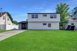 Welcome to this exquisite colonial nestled in the quiet Levittown neighborhood. It received a complete gut renovation earlier this year with everything new and of great quality material. It features 5 spacious bedrooms and 2 full baths. At the end of the long driveway, the brass double doors take you to the open concept living room/dining room/kitchen area. The electric fireplace not only provide extra heating but also give you the great aesthetic pleasure of the living room. All stainless steel kitchen appliances & brand name washer/dryer. The first floor has 2 bedrooms, full bath, laundry room, and sliders to backyard. The second floor presents 2-3 bedrooms and full bath. The fenced in backyard is bordering an enclosed State-owned grassland that gives you extra privacy and a great backyard view.