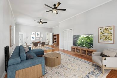 Welcome Home to this beautiful, newly renovated 3 Bed, 2 Full Bath Apartment that spreads across 2 floors and is about 2,000 sq. Ft. There is so much in this apartment that is new, including- kitchen cabinets and countertops, microwave, washer, dryer, vinyl plank flooring, windows, exterior doors, and so much more! Step through the front door into an expansive living room/dining room combo. area that has over 10 ft. high ceilings! A perfect gathering spot, whether you're eating, or lounging and enjoying the game. You will also find a new, full bathroom on this main floor. Through the doorway, you have a bonus area that can be used for an office, extra storage area, etc. Rounding out the main floor is a spacious gourmet kitchen that includes quartz countertops, new white cabinets, and a stylish island. Upstairs you will find 3 large bedrooms, each with updated closets and/or new armoires, as well as a full bathroom, and a designated laundry area, with a brand new washer and dryer. The back of the house has a large deck, big enough to fit a grill and patio furniture/table and chairs. Underneath the deck there is a large patio that is big enough for a table and has exterior access to the basement which can be used for storage. There is also enough room behind the back patio for off street/alley parking. As if this wasn't enough, the property is within close walking distance to all that Conshohocken has to offer including: Bar Sera, Brunch, Southern Cross Kitchen, CVS, the Library, etc. As well as being within 1.5 miles to the train station and the Schuykill Expressway. This apartment truly has it all! Book your showings today! (You can choose to do a 12 month lease for $3645/month, otherwise a 15 month lease is $3595)
