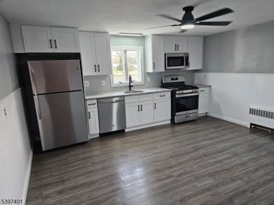 This beautifully renovated 2nd floor apartment is situated on a quiet cul-de-sac in a desirable section of Belleville, just one block from Nutley. The unit features a brand new kitchen with stone countertops and all new appliances, a modern bathroom with a one-piece shower and deep soaking tub, and high-quality gray vinyl flooring throughout and new carpeting on the stairs. Freshly painted rooms and ceilings, new doors, handles, trim, and updated lighting and ceiling fans create a bright and welcoming atmosphere. Enjoy the convenience of an in-unit stackable washer and dryer with new plumbing hookups, a full-width attic for ample storage, and parking options that include a detached one-car garage, additional driveway space, and free overnight street parking. Small dogs are welcome, making this stylish and comfortable apartment the perfect place to call home.