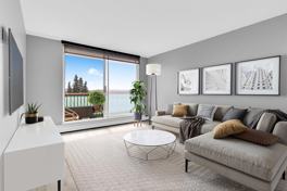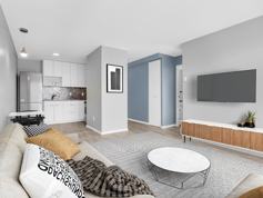 Beautifully updated 1-bedroom, 1-bathroom condo with 491 SQFT located at 320 Royal Avenue, New Westminster. This bright southeast-facing home offers plenty of natural light, a spacious open layout, and a large private patio with peaceful city and water views. The kitchen features modern white cabinetry, stainless steel appliances, and a sleek tile backsplash, while the bathroom includes a deep soaker tub and stone countertop vanity. The bedroom is bright and spacious with ample closet space, finished in neutral tones throughout. The concrete building is well managed and offers great amenities including a games room with billiards and table tennis, a bike room and a shared laundry. Ideally located just minutes from Columbia SkyTrain Station, Douglas College, shops, cafes, and parks - perfect for anyone seeking a stylish and convenient home in Downtown New Westminster.