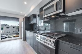 - Sleek stainless steel appliances (stove/oven, dishwasher, refrigerator, and microwave)