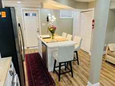 The beautiful kitchen is fully equipped with a stove, microwave, refrigerator with water & ice maker, dishwasher, and washer/dryer — ideal for cooking your favorite meals. You’ll love the kitchen island perfect for entertaining, morning coffee or dinner with friends.