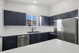 Main-floor private bedroom • Shared bathroom with 2 others (each with own vanity sink) • Newly updated flooring, fixtures, and finishes • Modern kitchen with stainless steel appliances and quartz counters • Furnished common areas • In-home washer/dryer • Bedroom blackout shades • Central A/C & heat • Fenced yard with patio, sunroom & deck • Driveway/street parking • Assigned shed & garage storage.