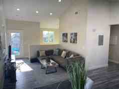 The units feature high ceilings, recessed LED lights, custom cabinets, quartz counter tops, all new stainless steel appliances (including washer, dryer, oven, and refrigerator), new flooring, and 2 parking spaces per unit. All units come with central AC and heating and Ring doorbells.