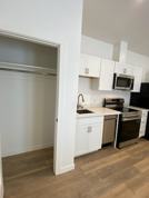 Ground level one bedroom apartment. Vinyl plank flooring throughout. French doors. Stainless steel appliances which include fridge, range, dishwasher and built in microwave. Plenty of cabinets and two storage closets. Washer and dryer included. Tiled bathroom. Modern lights fixtures. Close to Cottage Hospital and easy access to hop on or off the other freeway to get where you need to be. Pets considered.