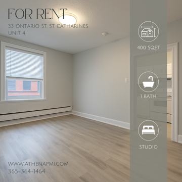 This upper-level studio apartment is in a desirable, centrally located, and well-maintained building. Ideal for anyone seeking an affordable rental option in downtown St. Catharines with easy access to transit, shopping, and daily essentials.
